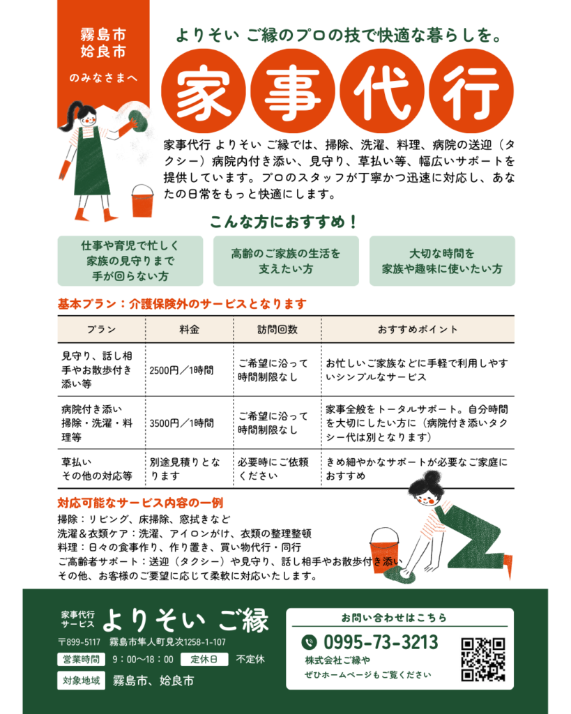 よりそいご縁(家事代行)のメニューページを追加しております。